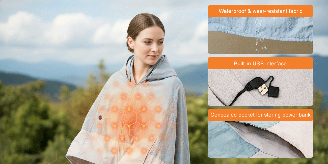 Wholesale Outdoor Portable Wearable Graphene Electric Heated Blanket Shawl Throw for Camping Hiking