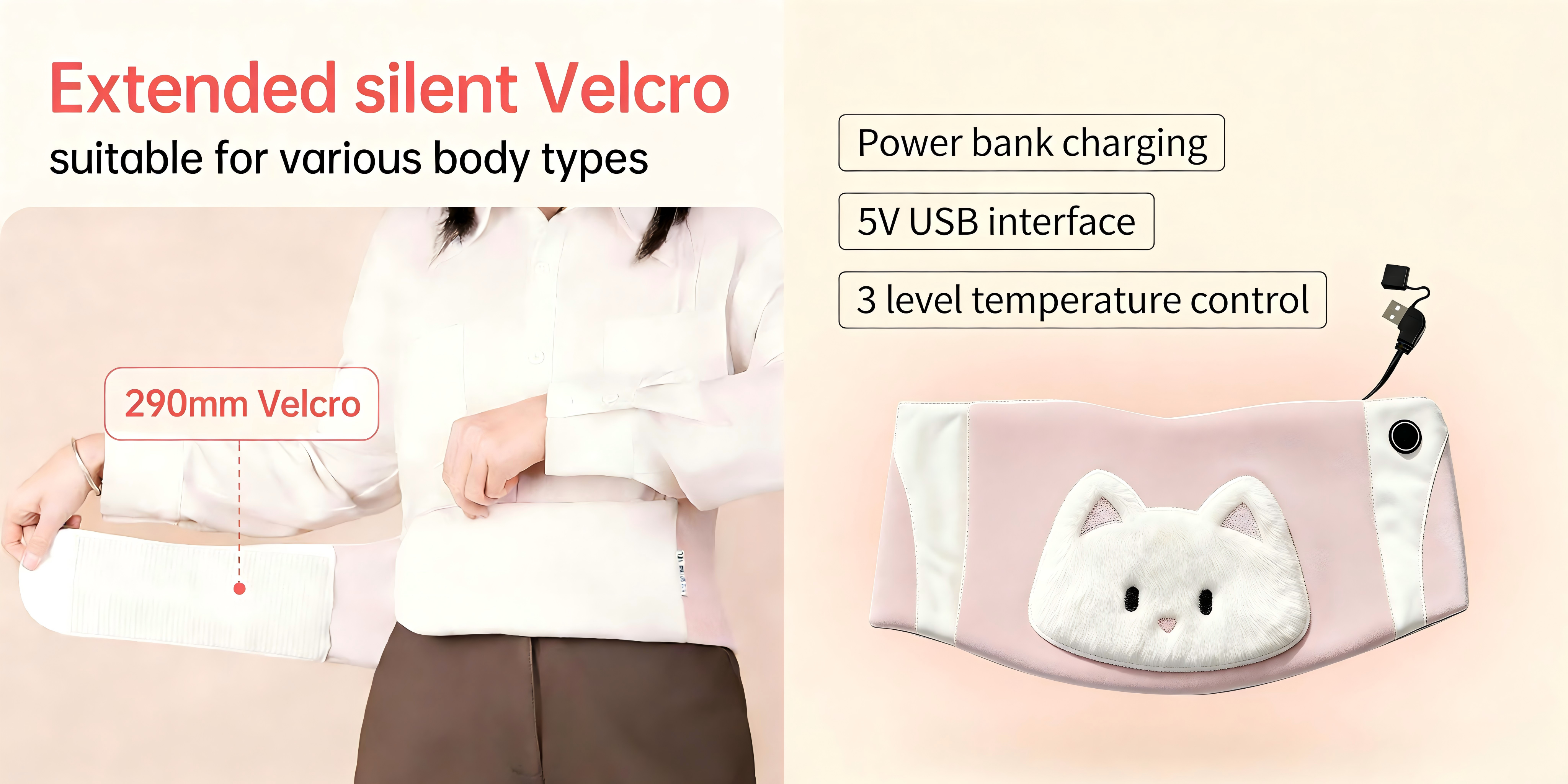 In addition, the graphene belt is powered by a USB interface, is compact in size, and is easy to carry. It can be used anywhere, whether at the office, in the car or at home. It has three temperature control settings, you can adjust the temperature according to your needs: the low setting is for daily warmth and mild relaxation, the medium setting is for relieving muscle stiffness, and the high setting is for deep Heat Therapy.