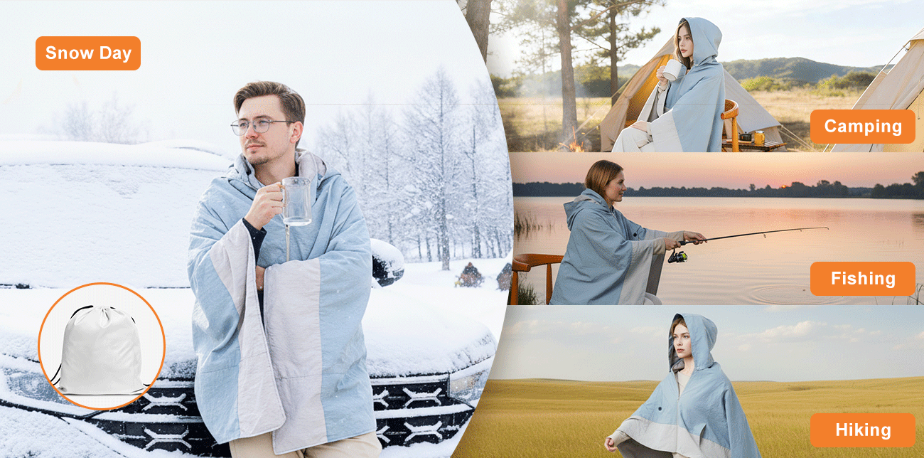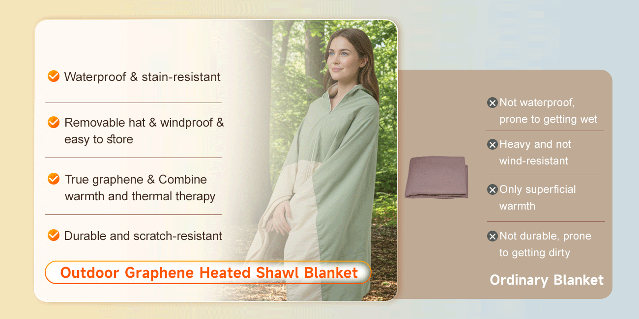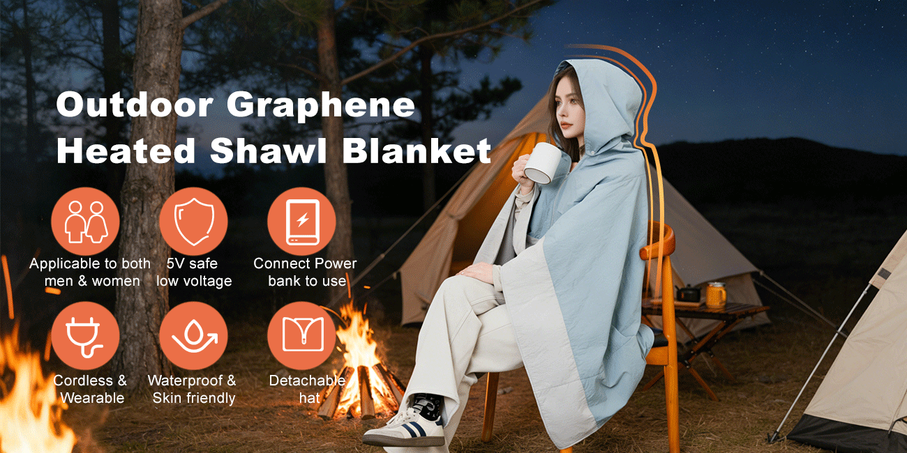 Wholesale Outdoor Portable Wearable Graphene Electric Heated Blanket Shawl Throw for Camping Hiking
